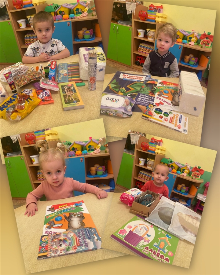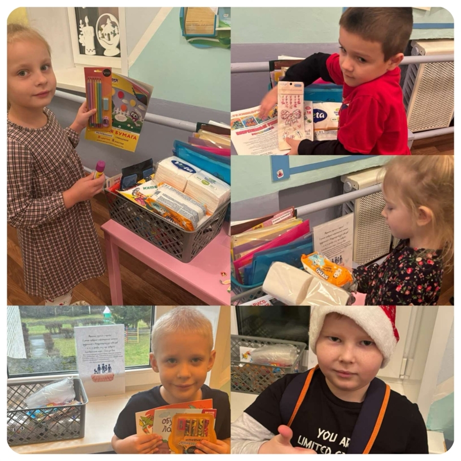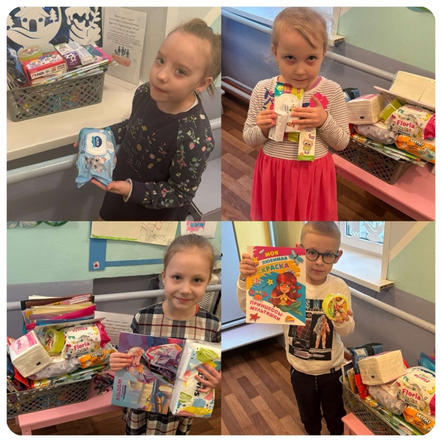 Родителями, воспитанниками и сотрудниками было собрано раскраски, книги, развивающие игры, дидактические пособия, влажные и бумажные салфетки, другие санитарно-гигиенические средства. Все собранные подарки будут переданы обучающимся и воспитанникам ГУО "Борисовский районный ЦКРОиР".