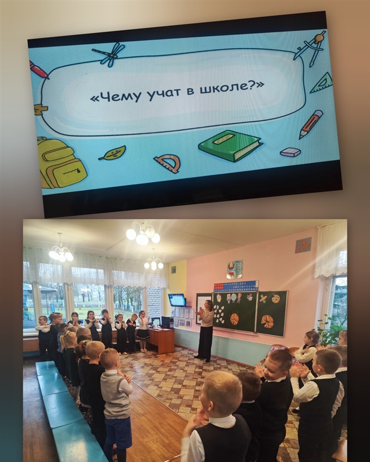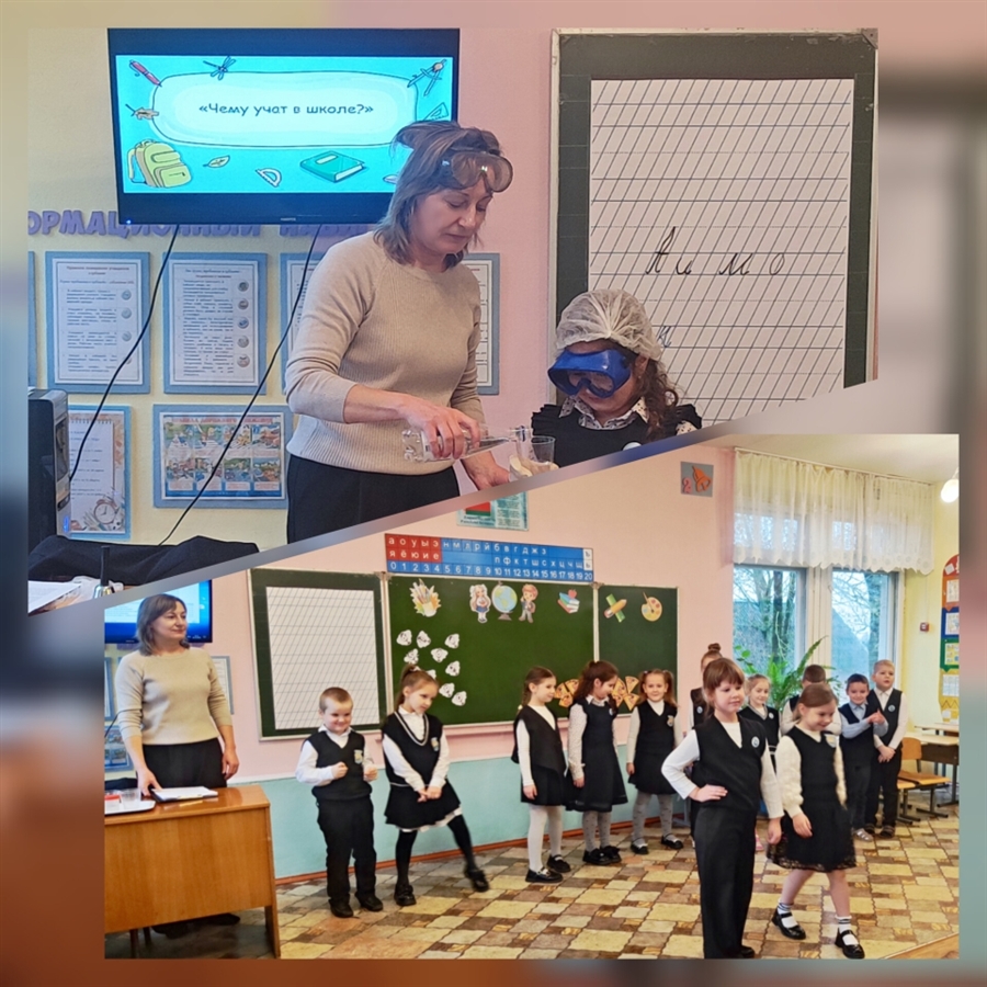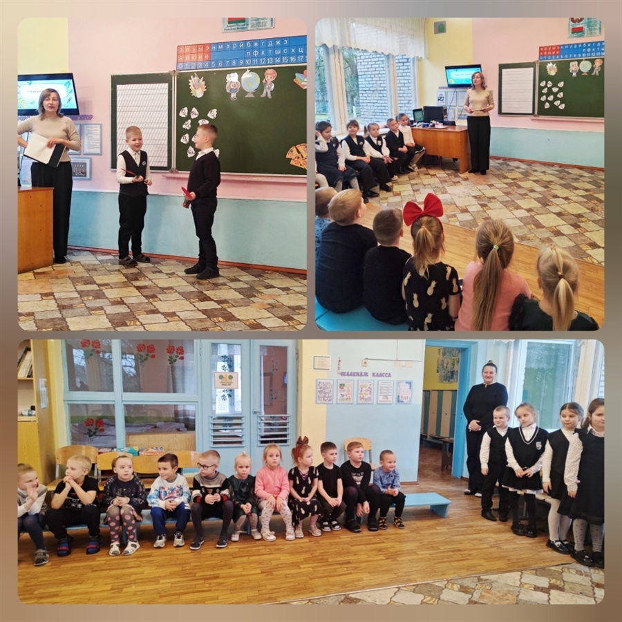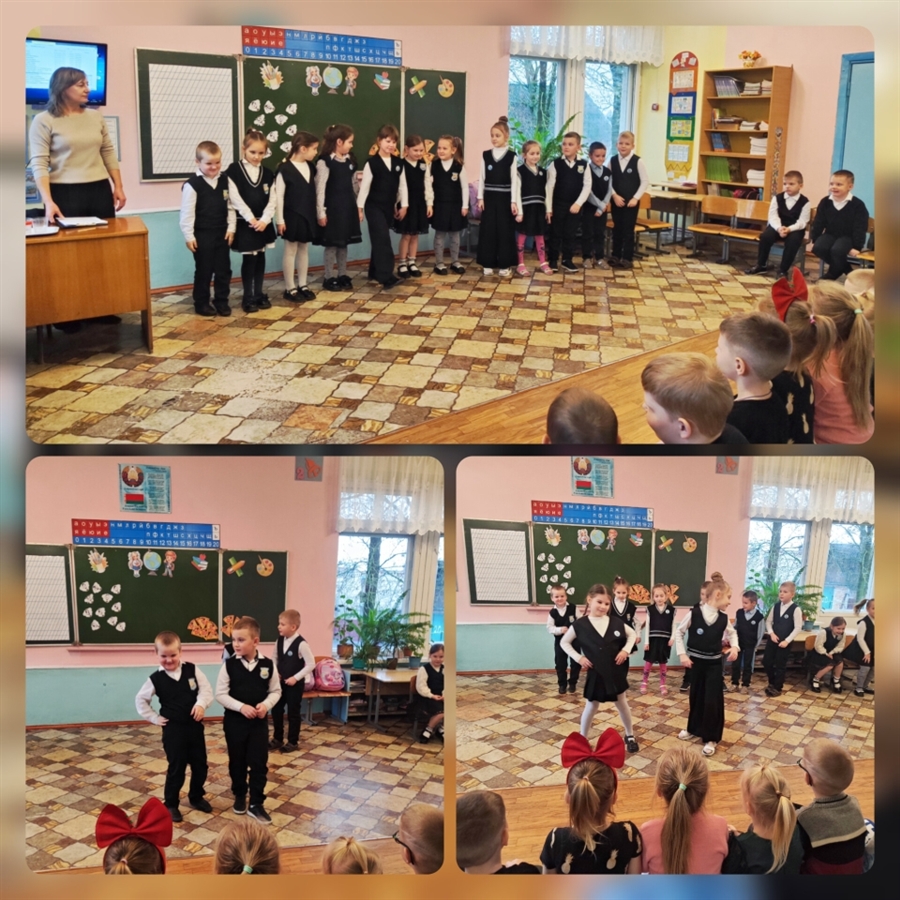 Учитель начальных классов Жилинская Наталья Николаевна, вместе с первоклассниками подготовила познавательное мероприятие "Чему учат в школе?", в рамках которого для наших ребят школьники продемонстрировали свои костюмы делового стиля, на практике показали, чему они научились за три месяца учебы - считать, решать задачи, писать и читать.