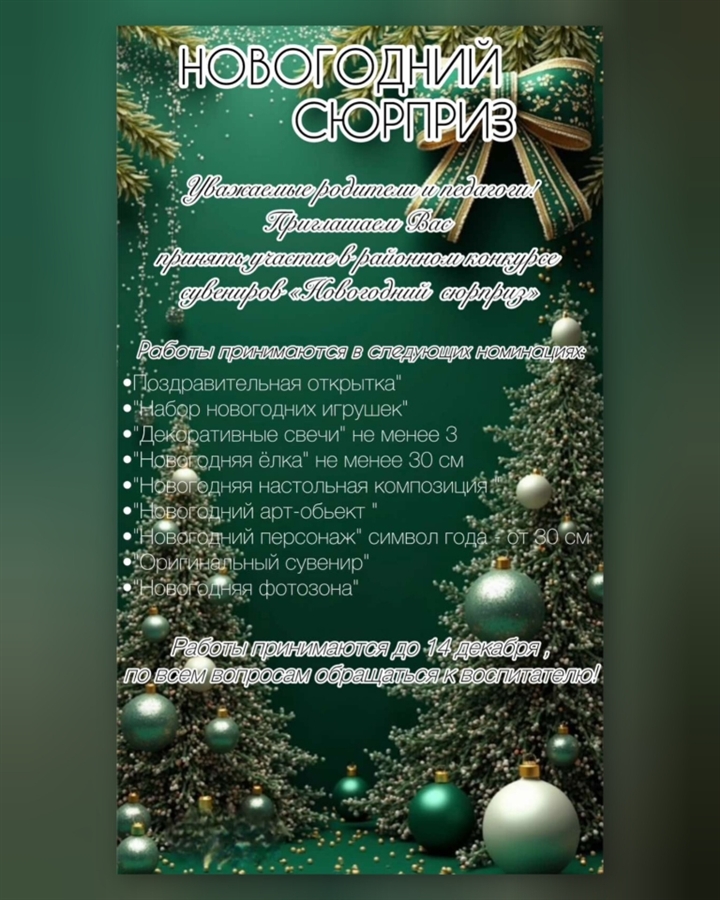 Работы на конкурс принимаются воспитателями всех групп до 14.12. 2025 года