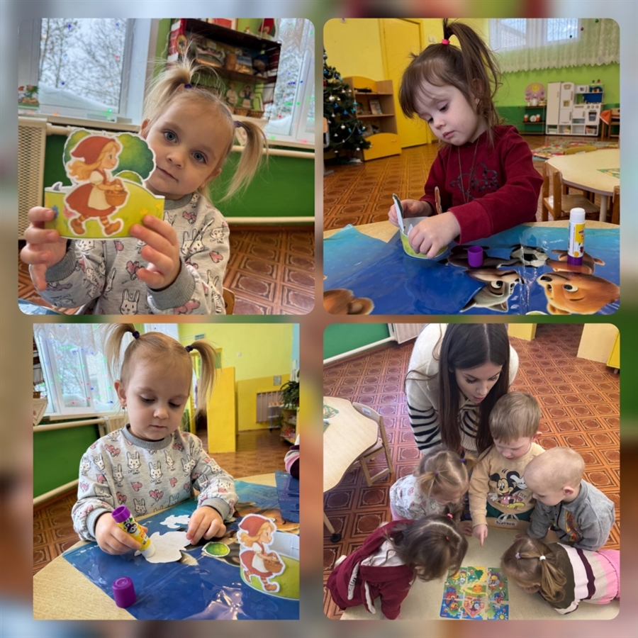 Воспитанники разновозрастной группы "Колосок" на разных станциях выполняли задания, вспоминали содержания любимых сказок, таких как "Колобок", "Репка". В завершении путешествия сделали объемную аппликацию по сказке "Красная шапочка".