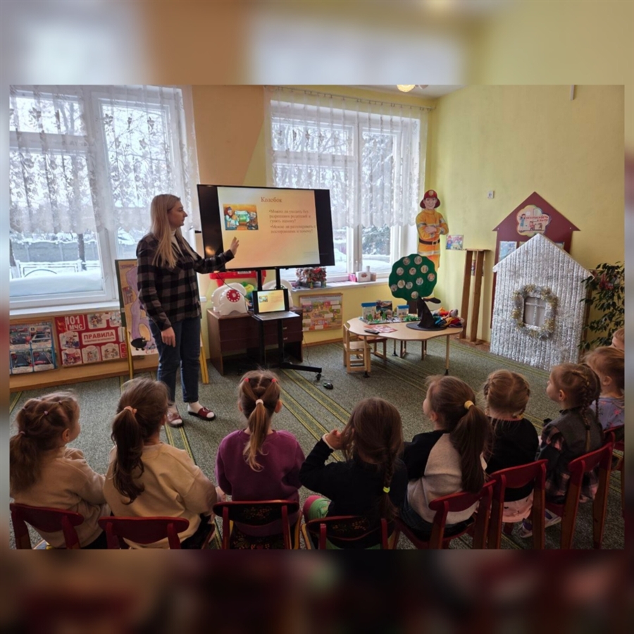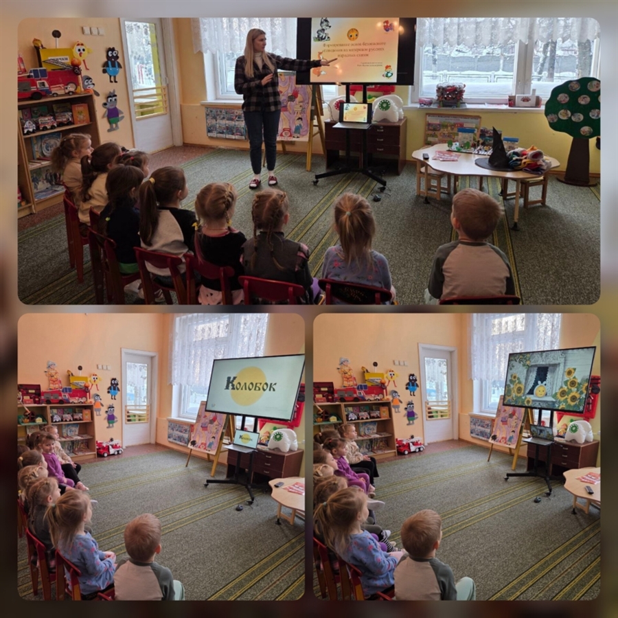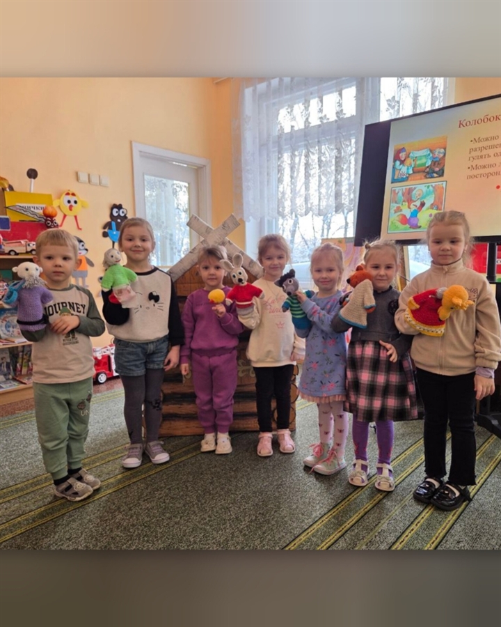 С воспитанниками средней группы "Пчелка" проведена литературная викторина "Сказки и безопасность", ребята отгадывали, какие правила безопасности рассказывает та или иная сказка. Все вместе инсценировали любимую сказку "Колобок", а также просмотрели мультфильмы "Колобок" и "Жихарка".